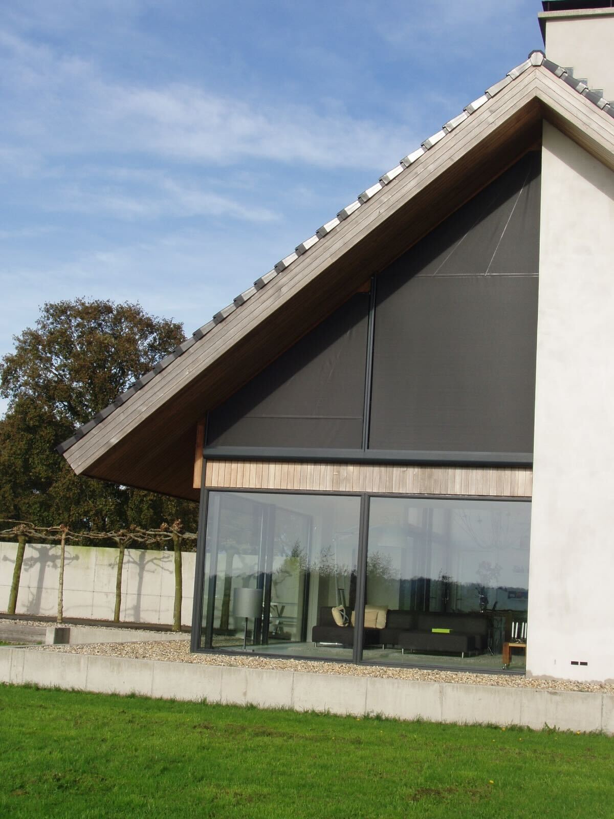 W Heliosun oferujemy systemy fasadowe ukośne i skośne z napędem elektrycznym, przeznaczone do dużych, nieregularnych okien – zarówno w domach, jak i obiektach komercyjnych.